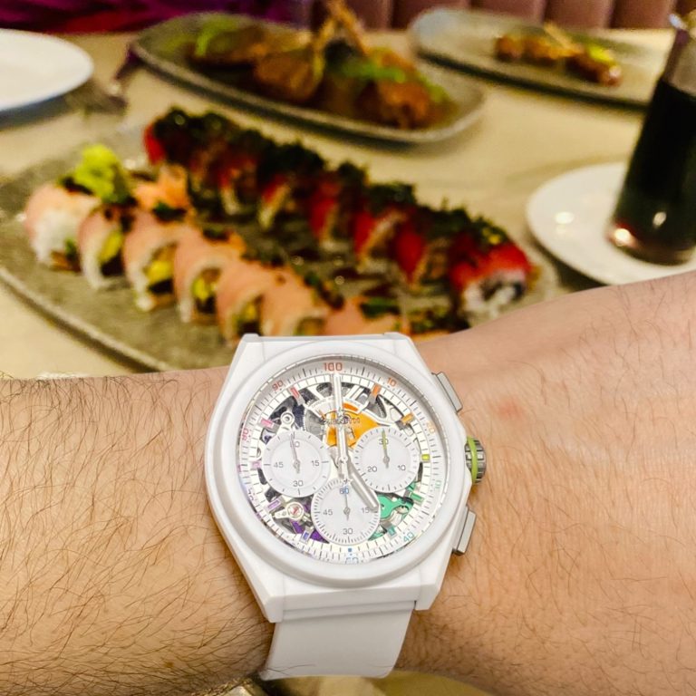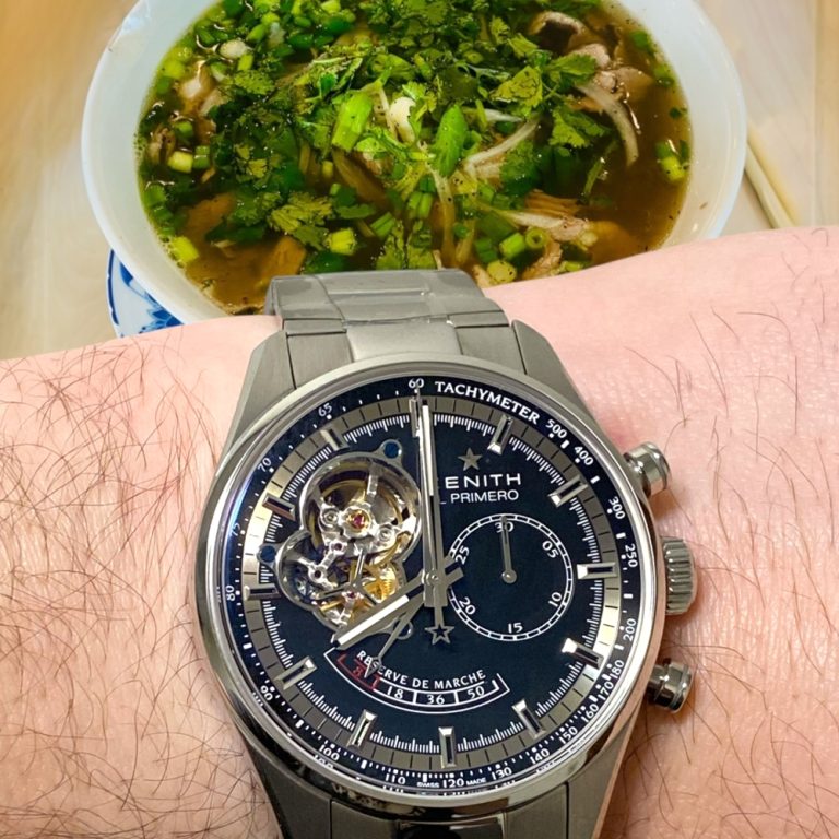 The time: 6:30 PMThe watch: Zenith Chronomaster El Primero Grande Date Recently, while driving around running errands, I decided to grab quick dinner at a place I’ve heard a few people in my office talk about. Tucked in a warm,…