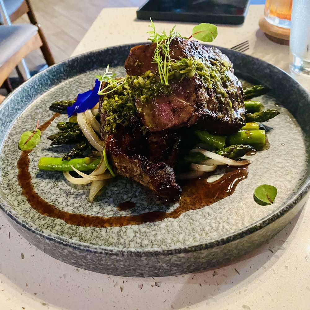 For the Prime New York Strip Steak, boldness and refinement share the same plate. The steak’s rich flavor is elevated by grilled onions and vibrant chimichurri, balanced against the crisp freshness of asparagus. This dish mirrors the Chronomaster’s duality of strength and finesse. With its 5 Hz El Primero movement offering 1/10th of a second precision, the watch balances raw mechanical power with the finesse of fine finishing.