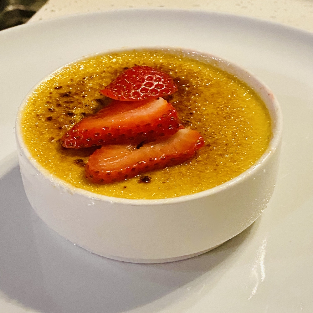 Dessert begins with the Crème Brûlée de Calabaza / Pumpkin Crème Brûlée. Its caramelized crust gives way to smooth, spiced custard, a study in contrast that delights with each spoonful. The Chronomaster shares this same ability to surprise and captivate, with its large double-date display and moonphase complication offering more than first impressions suggest. Hidden complexity becomes evident only when one looks closer.